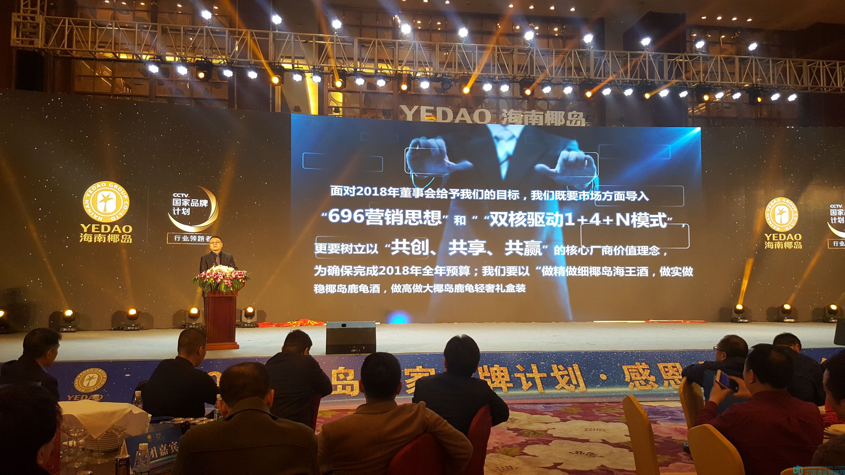 馬金全強調指出:“我們要切實貫徹實施12345體系,市場導入696營銷思想、組織導入雙核驅動1+4+N模式,更要樹立以‘共創、共享、共贏’為核心的廠商價值理念,全面導入‘456’策略,做精做細椰島海王酒,做實做穩椰島鹿龜酒,做高做大椰島鹿龜輕奢禮盒裝。在新營銷時代,椰島酒業要打破舊體制,創新出奇,直擊保健酒營銷痛點,出奇制勝。”