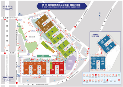展場分設六大類展區:酒類展區(14號館、15號館、16號館、14-15連接館、15-16連接館)、葡萄酒及國際烈酒展區(7號館、8號館、12號館、13號館、7-8連接館、12-13連接館)、食品飲料展區(3號館、4號館、5號館、6號館、3-4連接館、5-6連接館、室外廣場部分區域)、調味品展區(10號館、11號館、10-11連接館)、食品機械展區(1號館、2號館、1-2連接館)、食品包裝展區(室外廣場部分區域)。