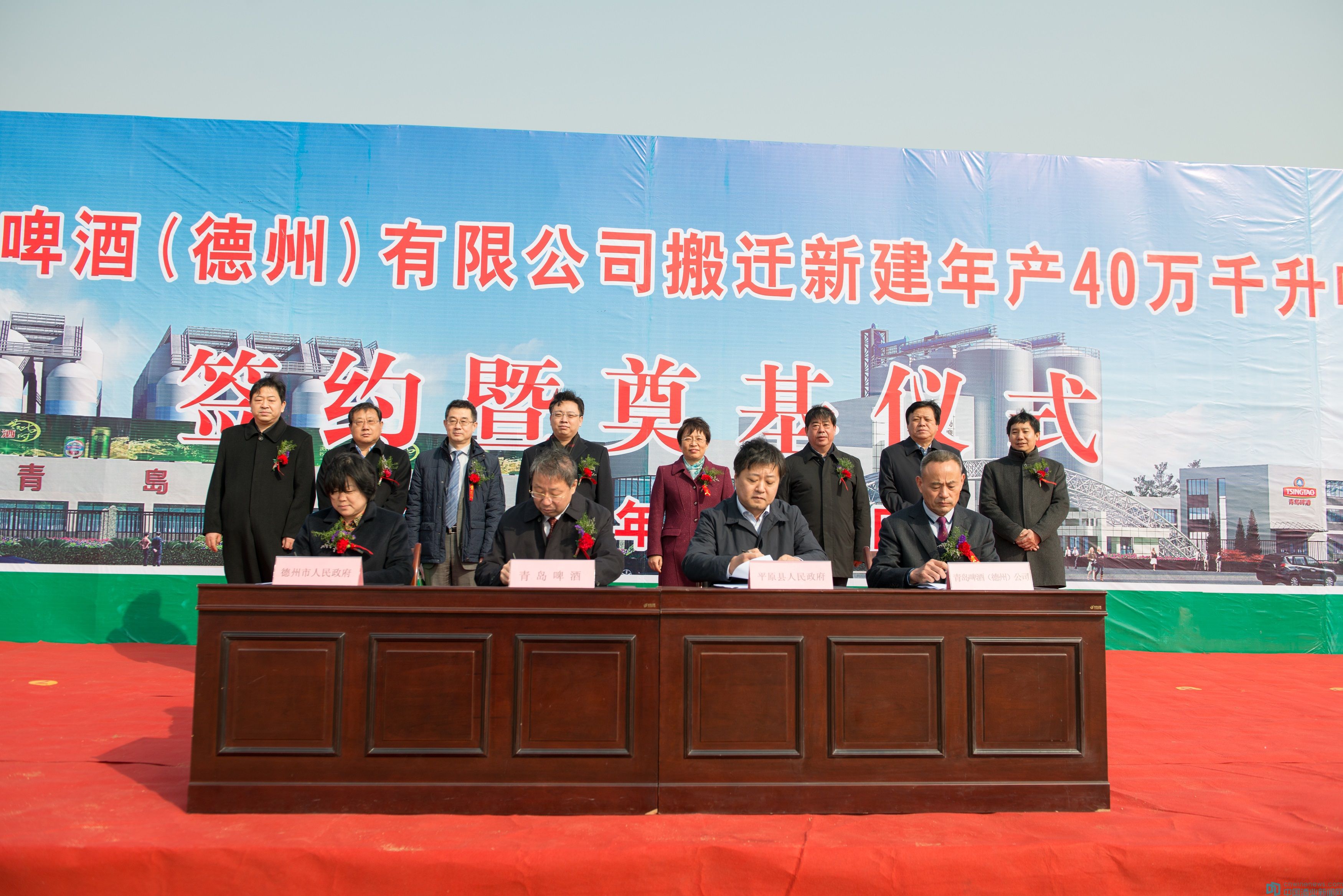 2月9日上午,青島啤酒(德州)有限公司年產(chǎn)40萬(wàn)千升啤酒項(xiàng)目簽約暨奠基儀式,在德州市平原縣隆重舉行。德州市委副書(shū)記、市長(zhǎng)陳飛,副市長(zhǎng)馬俊昀,平原縣委書(shū)記王洪霞、縣長(zhǎng)袁志勇,青島啤酒公司副總裁王瑞永,總裁助理、戰(zhàn)略投資管理總部部長(zhǎng)王少波,營(yíng)銷總裁助理、山東省區(qū)總經(jīng)理燕爭(zhēng)光,青島啤酒(德州)有限公司總經(jīng)理趙吉敏等領(lǐng)導(dǎo)出席儀式。