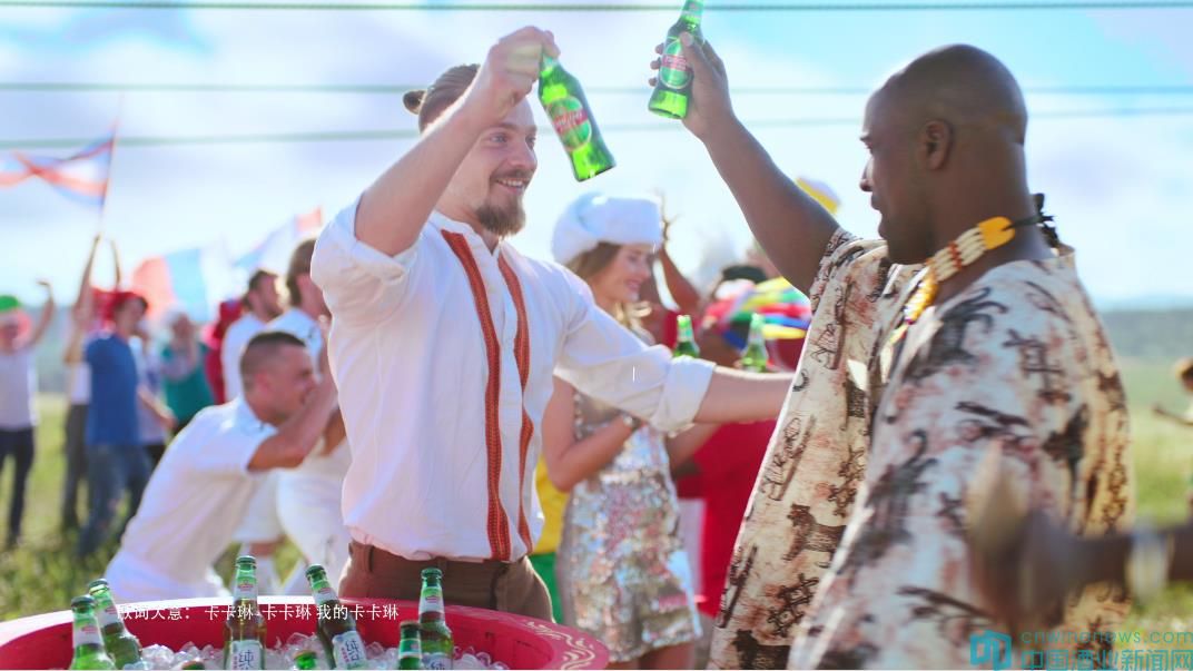 在這部“史詩級大片”中,約三億年前,地球原本是統一的巨大陸地,后來大陸漂移分成七大洲,人類自此各散東西,后來人類約定,每四年相聚一次,在這一天喝啤酒踢足球。時光穿梭,2018年俄羅斯球迷開始了一個偉大的想法,俄羅斯足球健將向全世界踢出足球,通過拔河這種夸張的表達形式,將球迷的熱情表現的淋漓盡致,在眾志成城的努力下,大陸板塊漸漸融合到一起,萬人共同舉杯,只要歡聚就沒有距離。