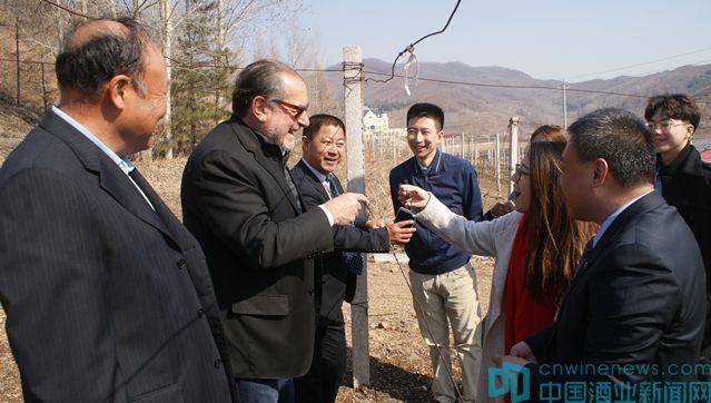 在參觀過程中,米歇爾·羅蘭先生對葡萄園的種植面積、種植密度,葡萄產量以及施用肥料等進行了詳細地了解,并拿起相機記錄酒莊風景。酒莊獨特的火山巖土壤及北冰紅葡萄品種給米歇爾·羅蘭先生留下了深刻印象,尤其是葡萄園內獨特火山巖土壤中所含的天然碎石結構,獲得米歇爾·羅蘭先生的高度認可,認為匯源的葡萄酒莊及葡萄酒產品極具潛力。