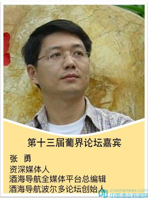 張 勇 資深媒體人、酒海導航全媒體平臺總編輯、酒海導航波爾多論壇創始人