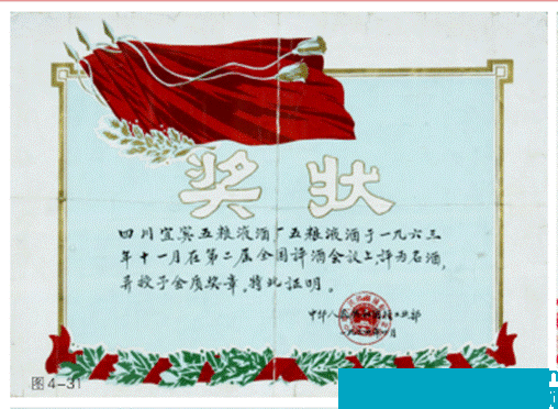 在第二屆全國評酒會上,五糧液被評為名酒的獎狀。