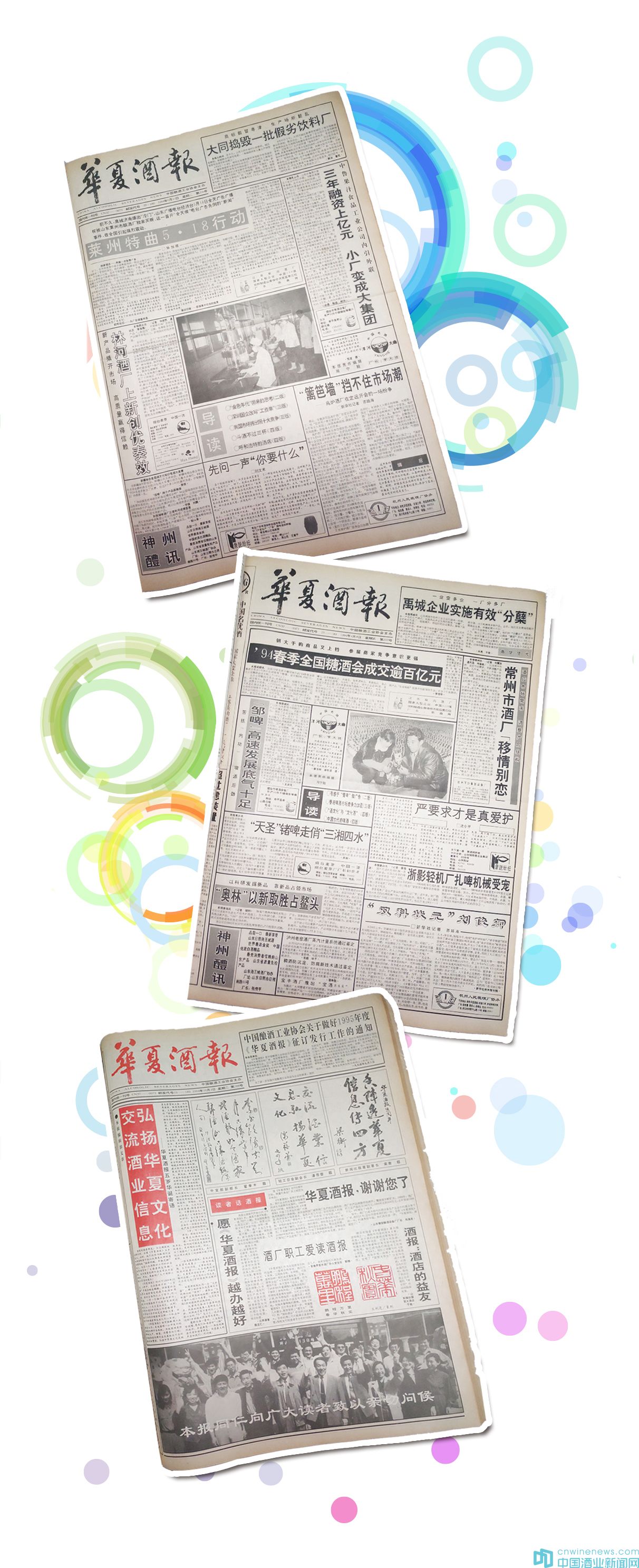 1994年10月,《華夏酒報》迎來創刊5周年。1994年10月4日,《華夏酒報》刊發的5周年寄語中,在對本報5年來與酒行業一起走過的歷程進行回顧的同時,也對未來做出了期許,“一張成熟的報紙,表現在報道本身的質量上——報道的選題、文字的功底、文章的深度、版面的效果……而在成熟的背后,則需要有科學的管理、嚴格的操作流程、一絲不茍的工作態度。這是這張5歲的報紙應該做到的。”