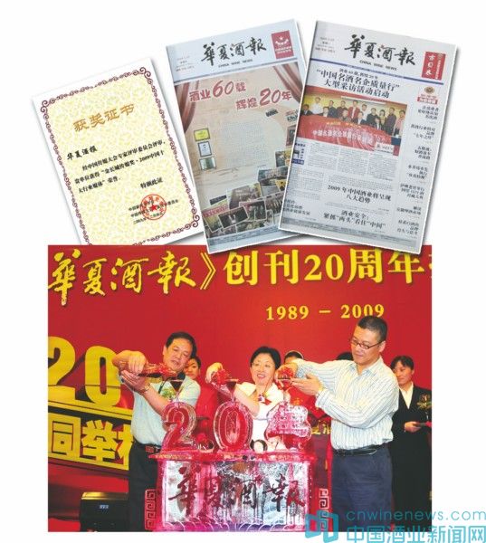 從1989年到2009年,經(jīng)歷了20年薪火相傳的《華夏酒報》,從創(chuàng)刊之初的一張對開四版黑白報,發(fā)展成2009年的全彩報,擁有了“一報一網(wǎng)”——《華夏酒報》和中國酒業(yè)新聞網(wǎng)兩個平臺。