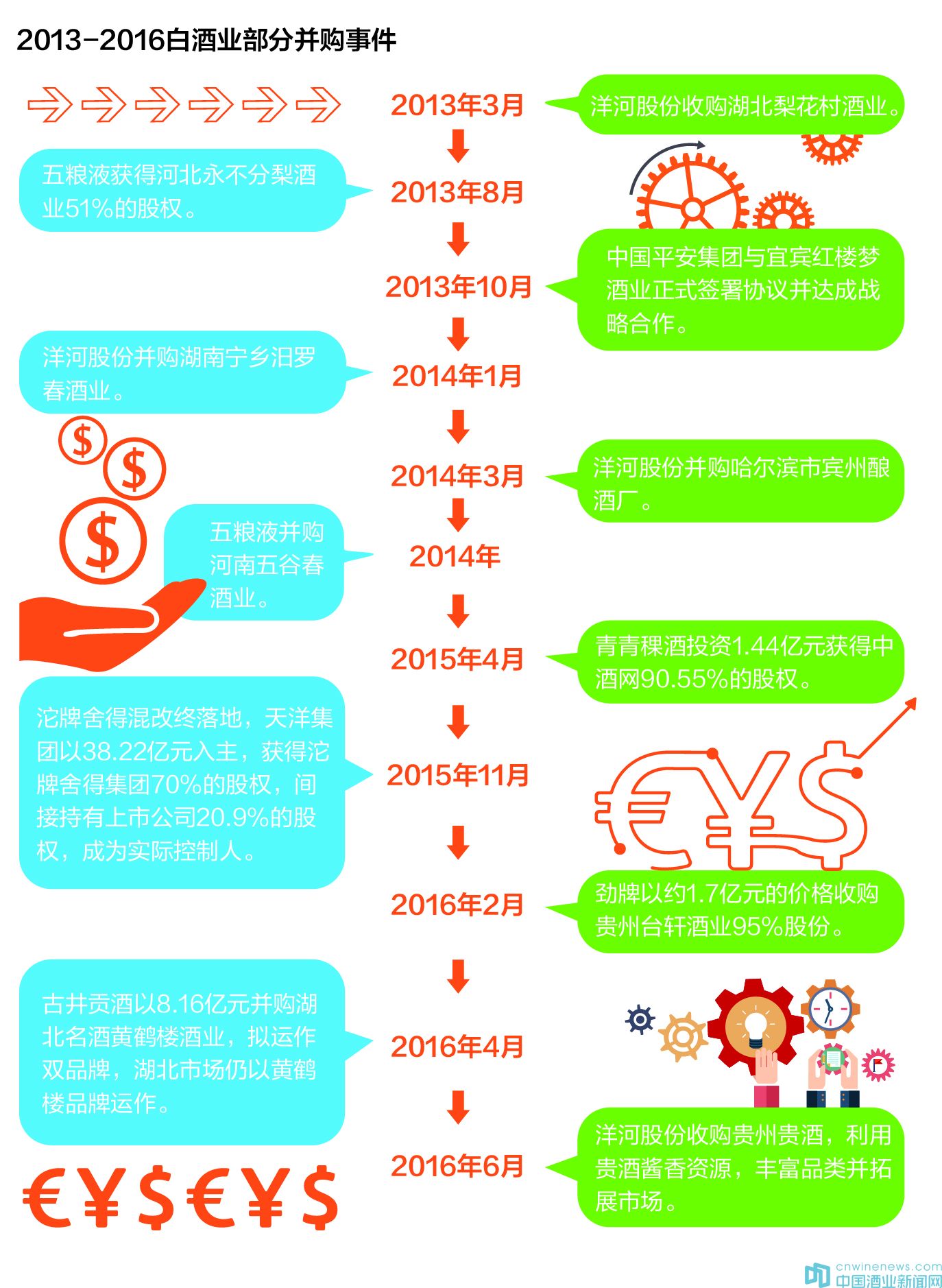 6月18日,洋河股份收購貴州貴酒,利用貴酒醬香資源,豐富品類并拓展市場;