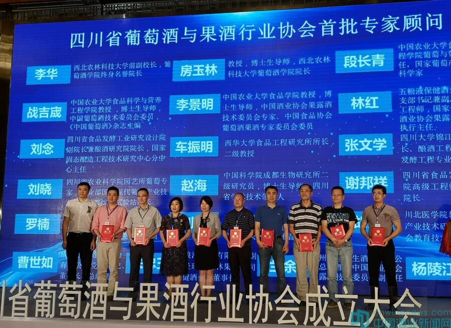 成立大會上,陳翀會長還向李景明、林紅、劉念、楊凌江、羅楠、蘭余、謝邦祥、趙海、劉曉、劉偉等10位首批專家學(xué)者頒發(fā)了四川省葡萄酒與果酒行業(yè)協(xié)會專家顧問委員聘書。