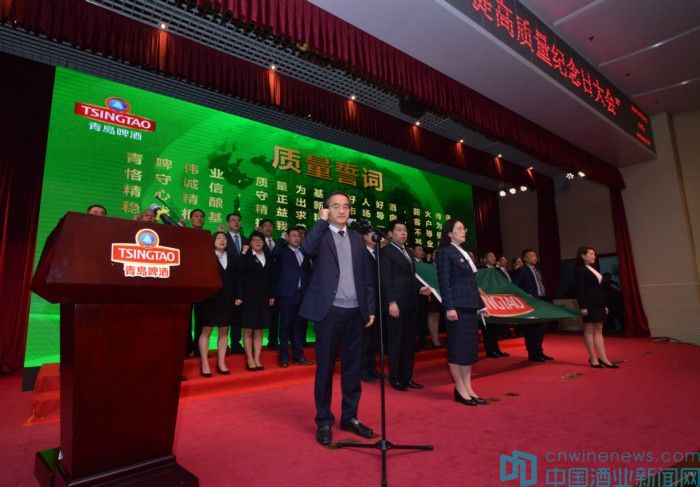 青島啤酒公司總裁兼制造總裁、總釀酒師樊偉帶領釀酒師團隊進行質量宣誓
