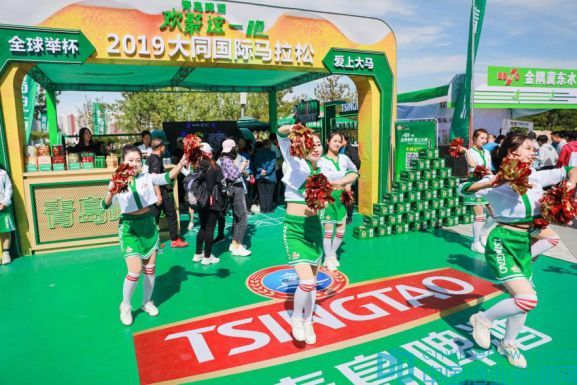 在現(xiàn)場,綠色的青島啤酒展覽區(qū)匯成一道悅目的風(fēng)景線,蹦蹦跳跳的熊貓玩偶、啤酒玩偶引領(lǐng)青島啤酒助威團跑出熱鬧和歡樂,酒王爭霸賽提前引爆整條賽道的激情,熱情靚麗的青島啤酒啦啦隊為你帶來勁歌熱舞。搖一搖等互動游戲,更是把青島啤酒的福利獎品不停送。如果說腳步與汗水抒寫了大同的魅力人文,那么歡聚和暢享則演繹了青島啤酒的快樂理念。