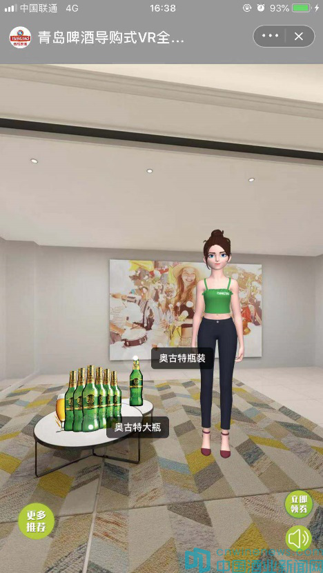 近日,青島啤酒天貓官方旗艦店發(fā)布首個“導(dǎo)購式VR全景店”。“歡迎來到青島啤酒全景店鋪,我是您的虛擬助手,請問您想購買青島啤酒用于哪種場景?”身臨其境的購物感受之外還能享受1對1的私人導(dǎo)購服務(wù),宛若游戲界面,為用戶呈現(xiàn)“擼串、聚會、飲酒、派對、情侶”五大消費(fèi)場景。點(diǎn)擊進(jìn)入,即可跟隨虛擬助手進(jìn)入360度的全景消費(fèi)場景,場景真實(shí),并推薦相應(yīng)的青島啤酒品類。