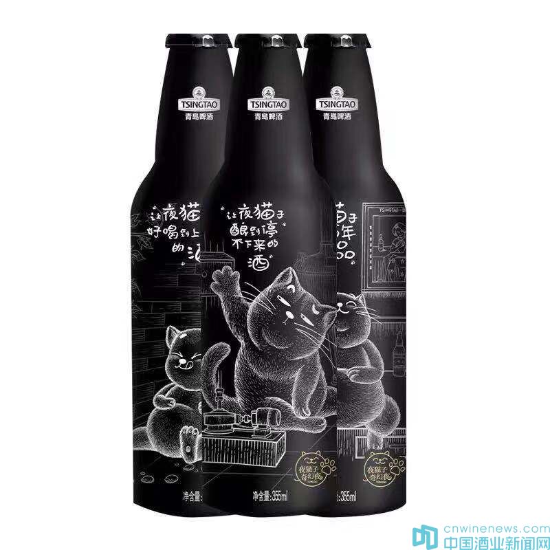 今年青島啤酒夜貓子啤酒除了升級瓶身設計風格之外,新增三條個性文案:讓夜貓子迷了百年的妙品、讓夜貓子釀到停不下來的酒、讓夜貓子好喝到上天的酒,配合瓶身軟萌的夜貓形象,透出夜貓的優雅與隨性,越夜越迷人。