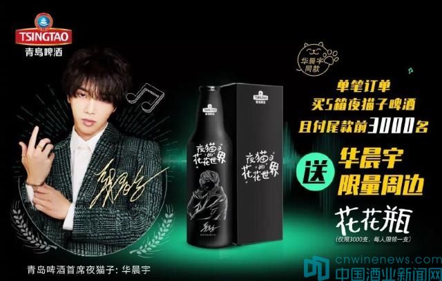 好歌用心打磨,好酒精心慢釀。青島啤酒邀華晨宇出任“首席夜貓子”,更帶來了限量款花花瓶,滿足花花粉絲的收藏需求。單筆訂單滿5箱,且付尾款前3000名的粉絲,均可以得到一支華晨宇限量周邊花花瓶。