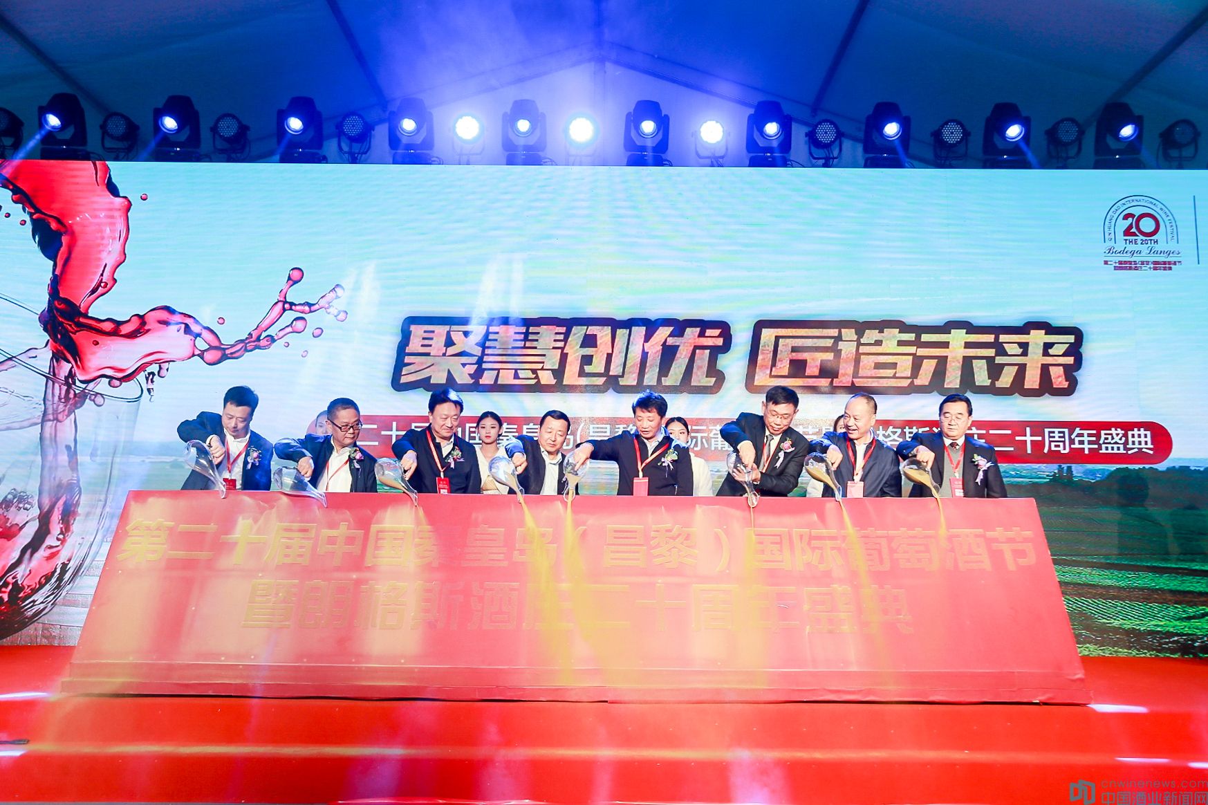 10月15日,由中國酒業協會、秦皇島市人民政府聯合主辦,昌黎縣人民政府、朗格斯酒莊等承辦,中國食品工業協會葡萄酒專業委員會、中國酒類流通協會葡萄酒專業委員會、河北省工業和信息化廳支持的,以“聚慧創優、匠造未來”為主題的第二十屆中國秦皇島(昌黎)國際葡萄酒節開幕式,在昌黎朗格期酒莊隆重舉行。來自國內外的知名企業家、業界專家學者、新聞媒體及部分葡萄酒相關企業代表近300人參加了此次盛會。