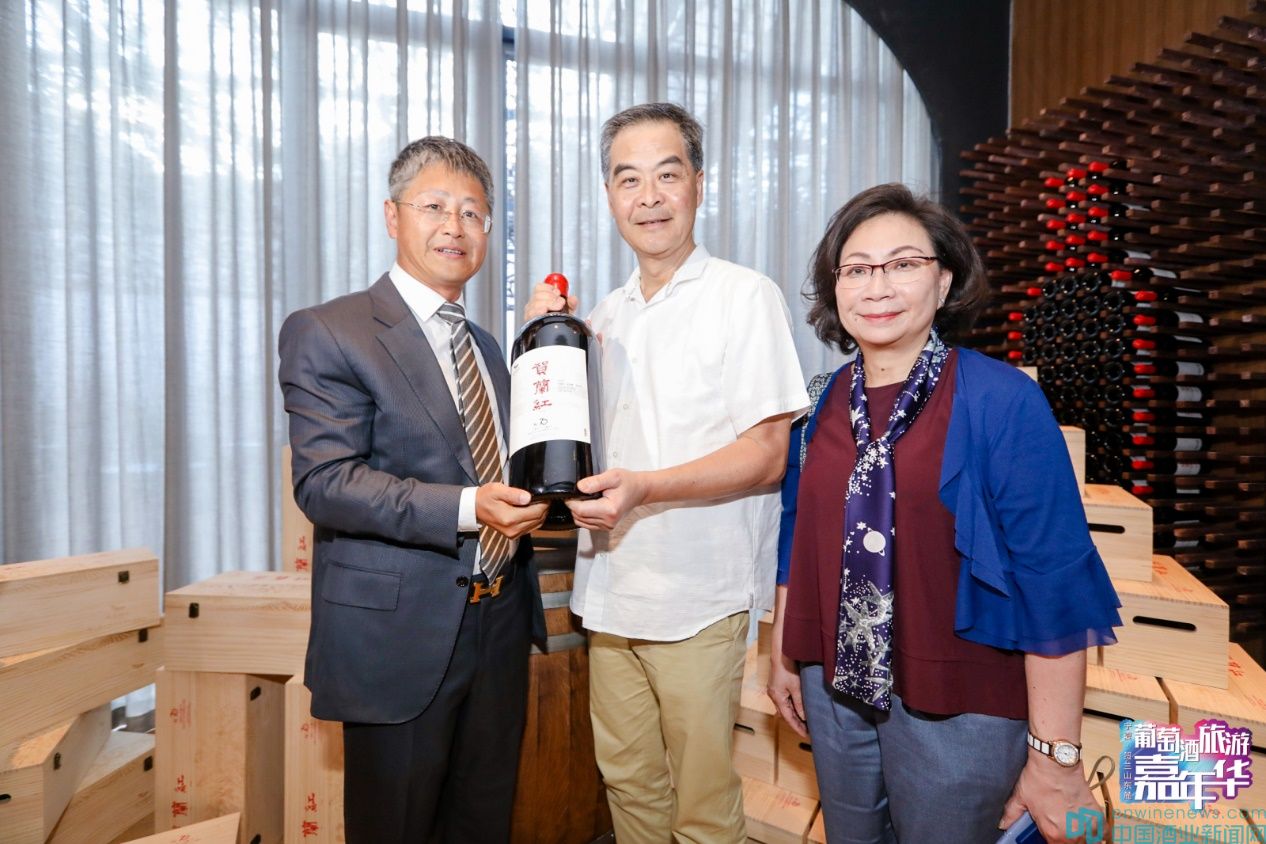 論壇上,梁振英副主席帶領與會代表共同品嘗賀蘭紅葡萄酒