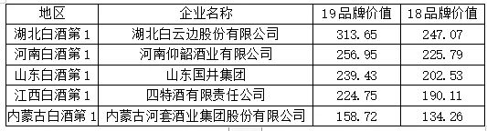 以下是各省龍頭酒企近兩年品牌價(jià)值: