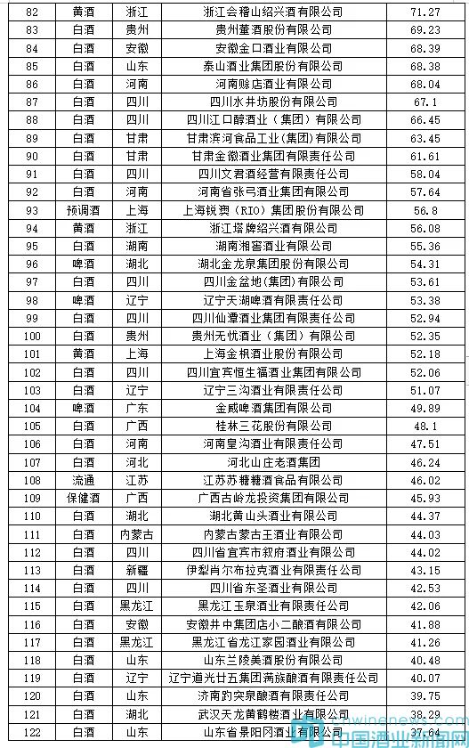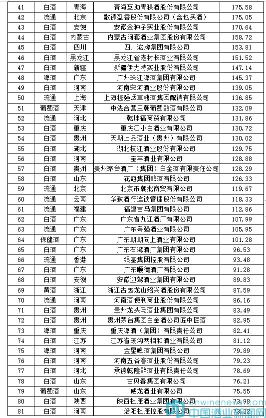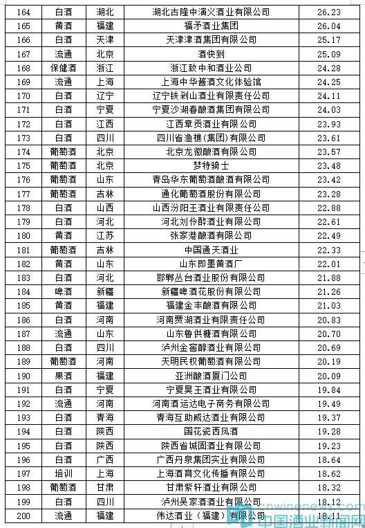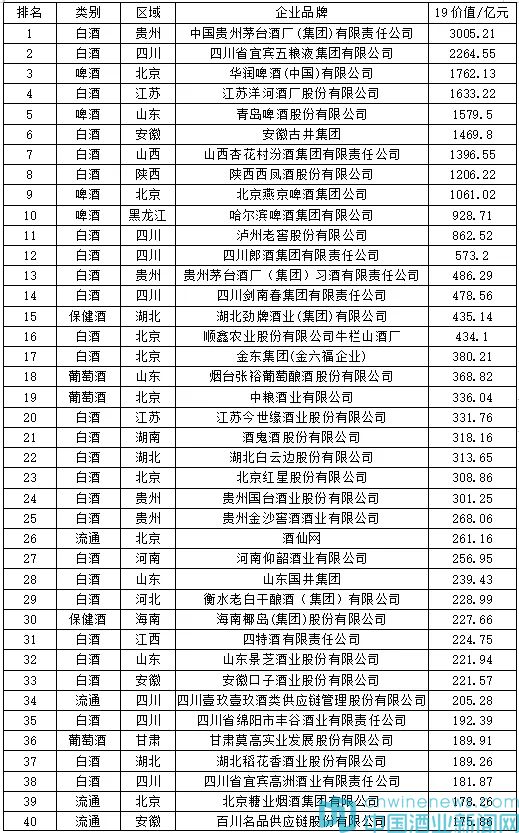 以下為2019年中國酒類企業(yè)品牌價(jià)值200強(qiáng)名單: