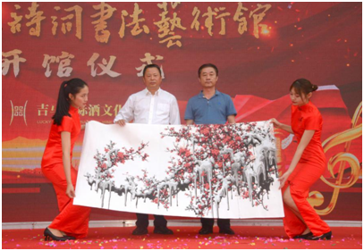 活動(dòng)現(xiàn)場(chǎng)圍繞唱紅歌、品美酒、賞酒器、洽合作四大環(huán)節(jié)展開(kāi),隨著《芳華》舞蹈的音樂(lè)聲響起,“毛澤東詩(shī)詞書法藝術(shù)館”開(kāi)館儀式正式拉開(kāi)了序幕。
