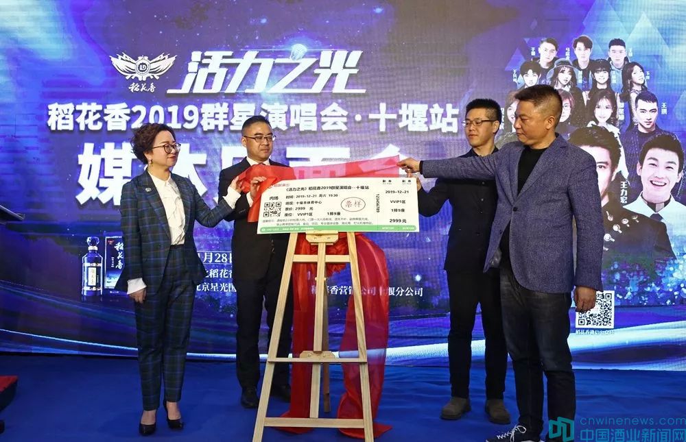見面會上還舉行了 “活力之光”稻花香2019群星演唱會(十堰站)開票儀式,方麗華、楊海波、梁可青、羅賢智共同為十堰站演唱會首張門票揭開神秘面紗,并現場授予消費者代表國瑞陽光地產集團十堰城市公司營銷總監王琳女士。