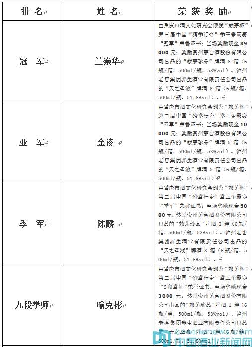 “賴茅杯”第三屆中國“猜拳行令”拳王爭霸賽取得圓滿成功!