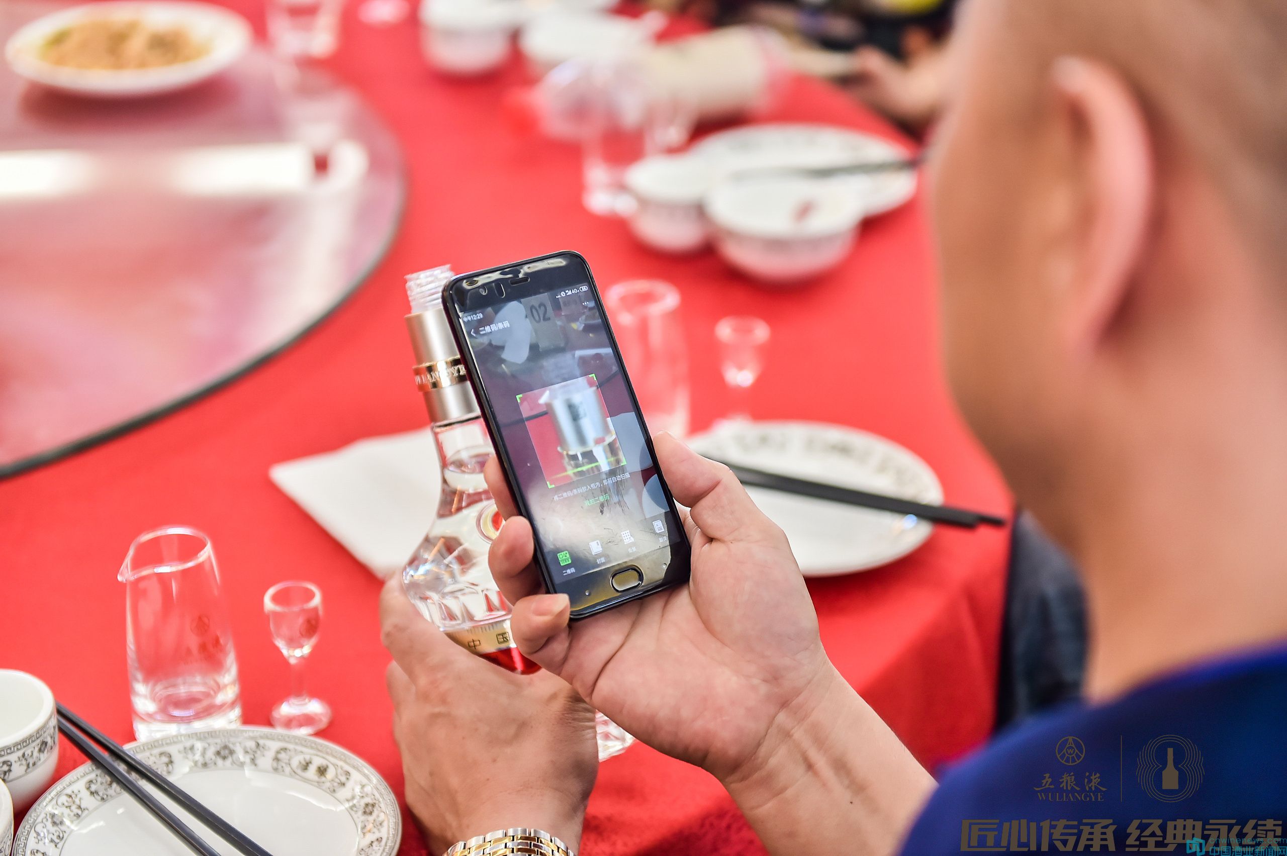 品鑒午宴上,與會者爭先恐后地拿出手機(jī)進(jìn)行實地實物的開瓶掃碼體驗。這樣不僅能有效防止假貨,還得到了大家的高度評價。