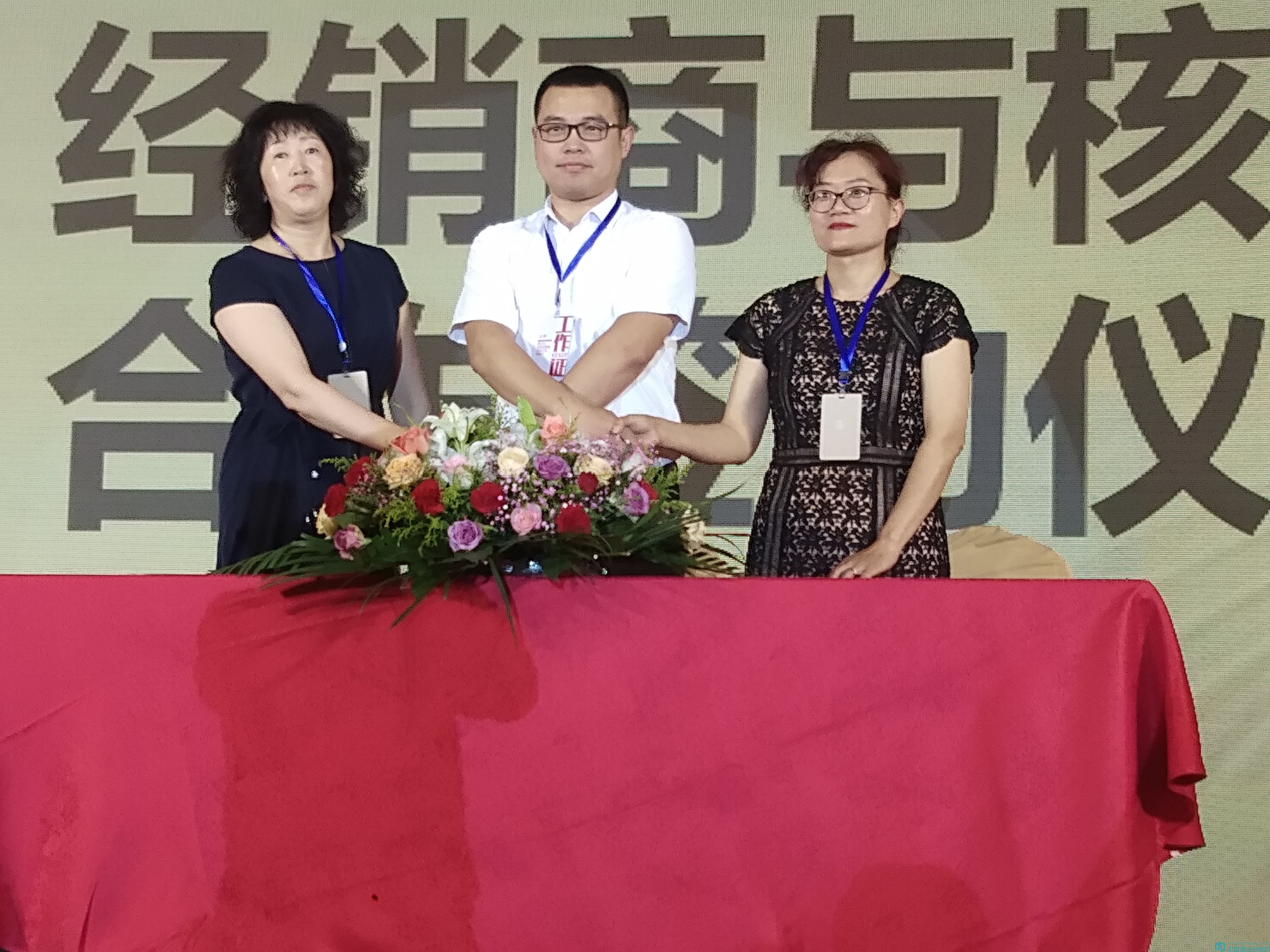 隨后,煙臺全晟酒業(yè)公司董事長助理孫杰跟終端經(jīng)銷商代表——一諾酒水公司總經(jīng)理張春萍、威海東方糖酒公司總經(jīng)理宮云英共同在終端營銷授權(quán)書上簽字。