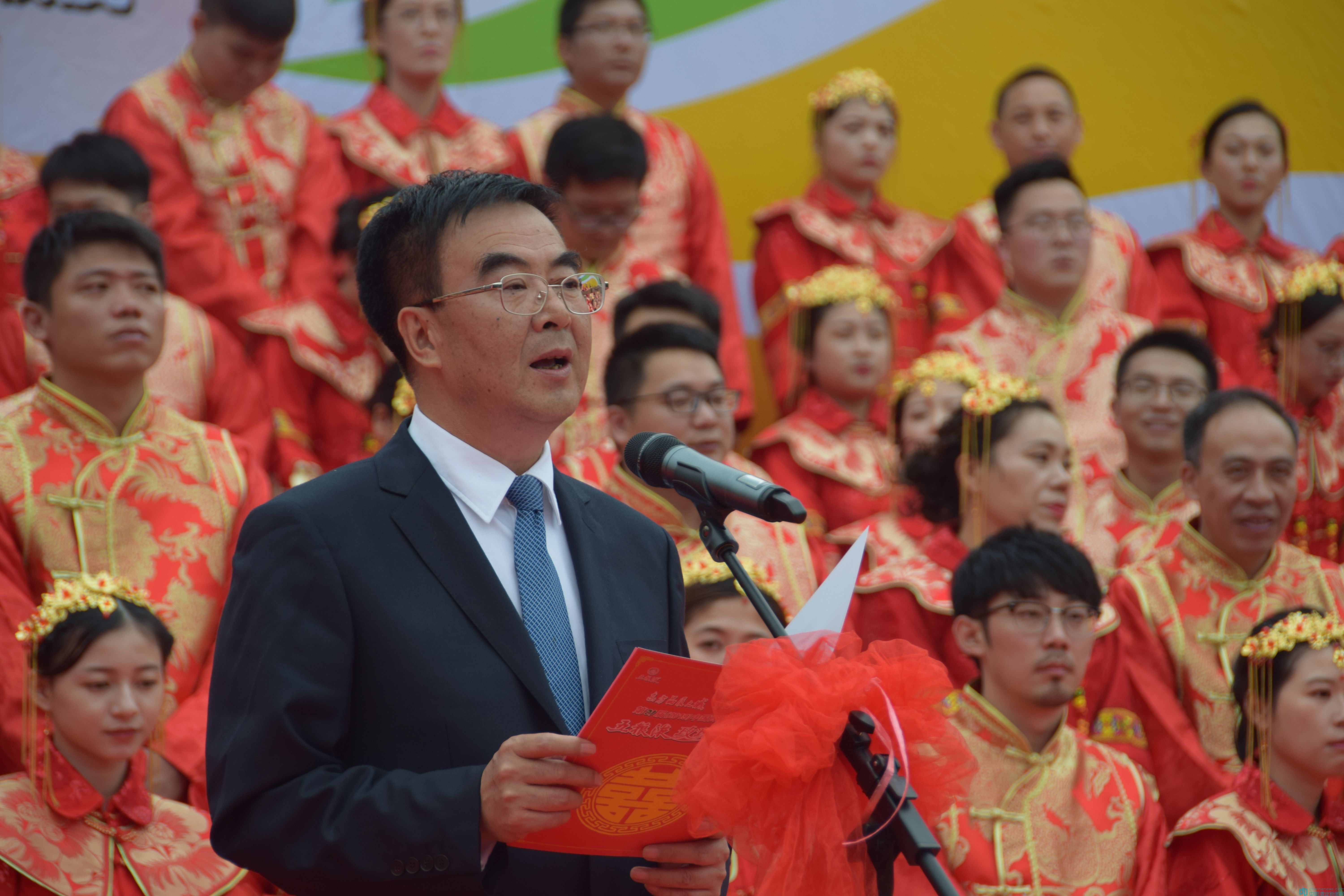 婚典上,陳紅英為百對新人主婚,胡偉為新人致賀詞,鈕俊為百對新人送上了一套珍藏版的中華家訓(xùn)書籍作為婚禮紀(jì)念品,希望新人們在婚后和睦相處,共創(chuàng)美好文明家庭。同時,百對新人還接受了五糧液玫瑰婚典組委會頒發(fā)的百年好合證書,并參加了幸運抽獎。