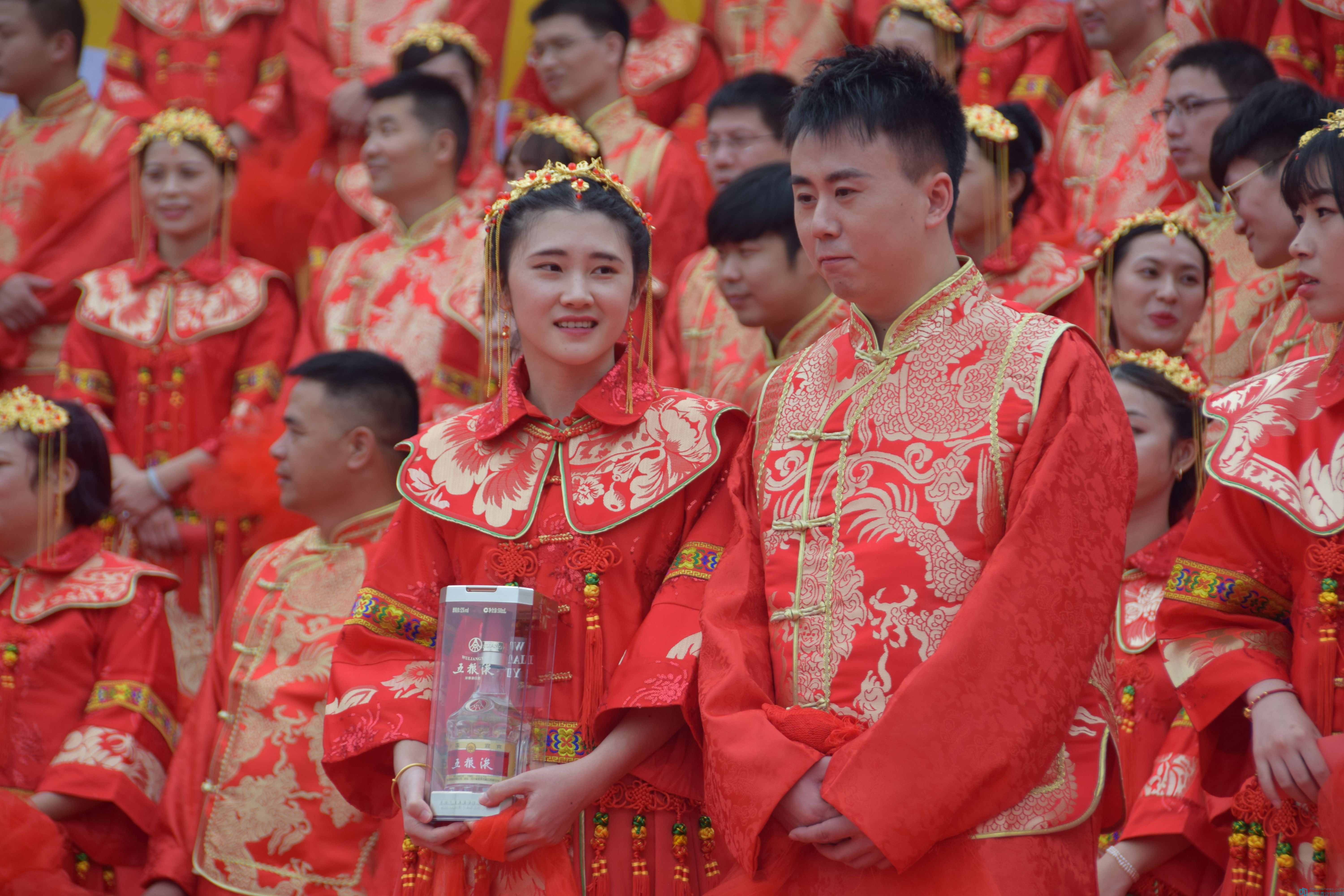 據(jù)五糧液玫瑰婚典組委會工作人員介紹,今年五糧液玫瑰婚典以“最憶最美最愛”為婚禮主題,百對新人來自臺灣、山東、江西、湖北、廣西、新疆、甘肅、廣東、江蘇、四川、河南、福建、上海等17個省及直轄市,他們中有工人、教師、公安、交警、公務(wù)員、科技人員、醫(yī)生、服務(wù)員等。百對新人中有一心等著參加玫瑰婚典結(jié)婚的新人;也有為了抗擊“利奇馬”臺風(fēng),放棄原定婚禮時間,特地來參加玫瑰婚典的新人;更有十對來自寶島臺灣的新人,千里迢迢趕來,只為參加這一場特別有紀(jì)念意義的五糧液玫瑰婚典。