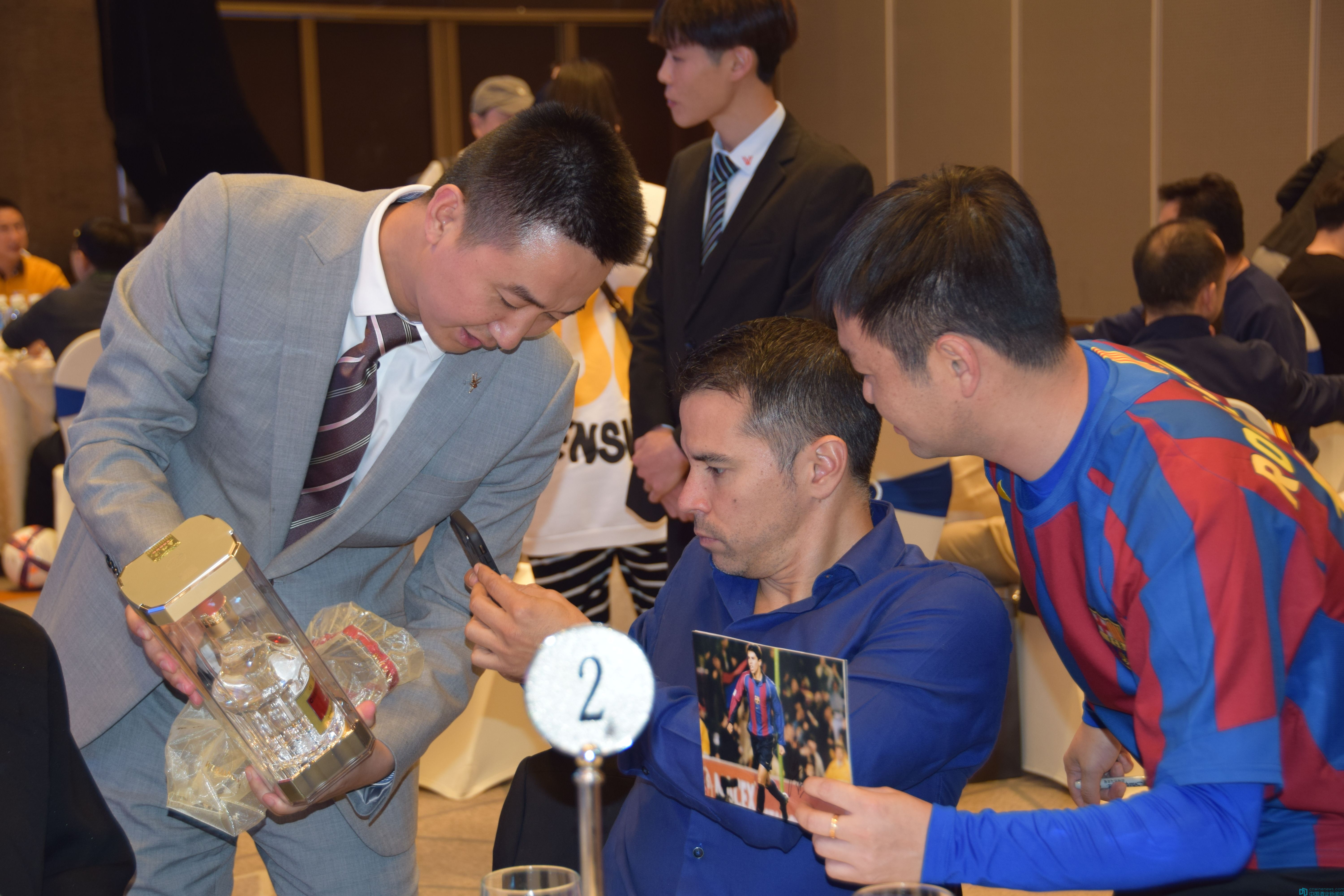 在晚宴現場,當歐文見到五糧液世界杯限量版紀念酒時,為其獨特的造型點贊,主動與五糧液酒合影留念。五糧液將這款五糧液世界杯限量版紀念酒贈與歐文,歐文表示要把五糧液帶回歐州,讓更多的國際消費者愛上五糧液。