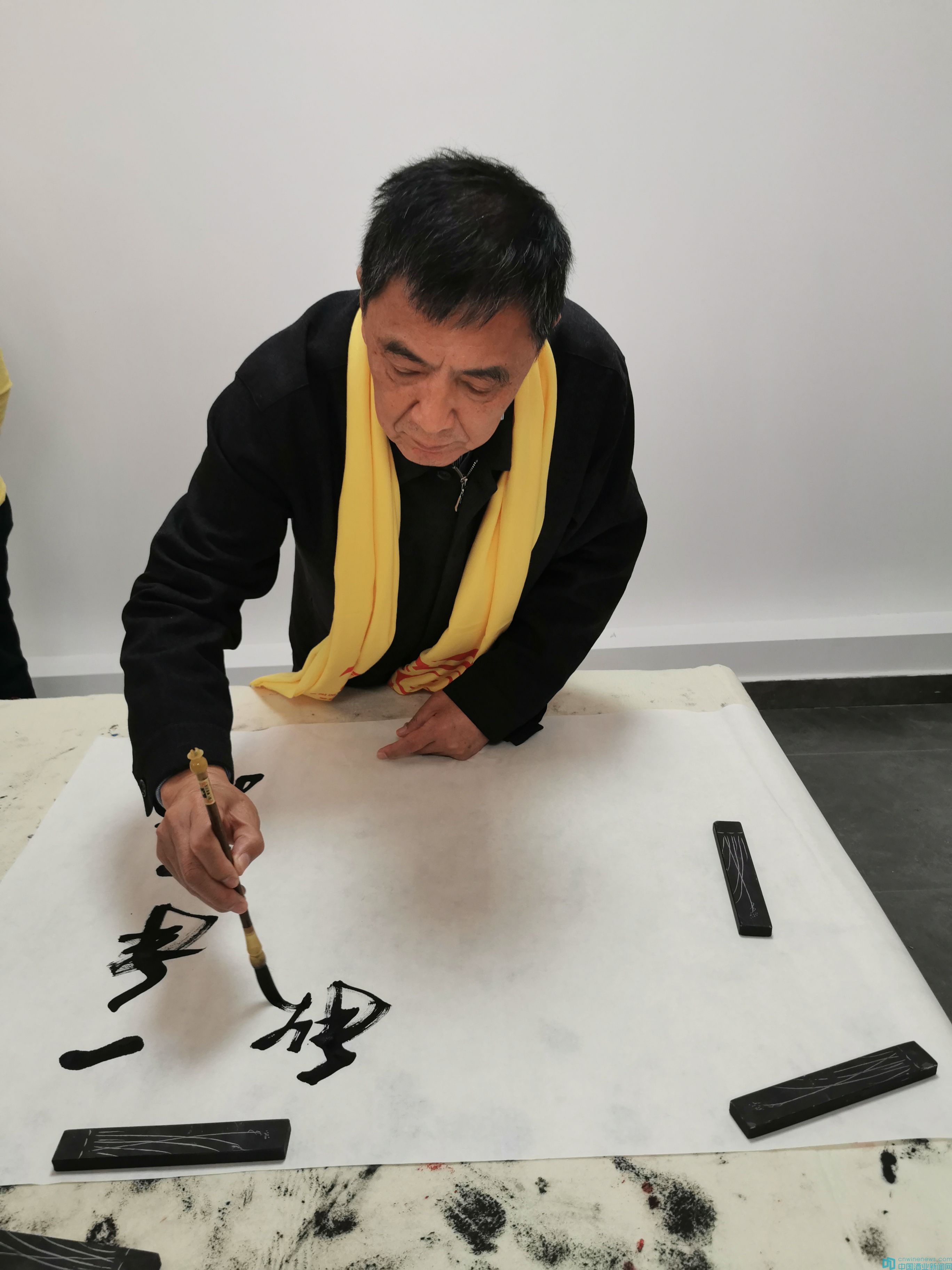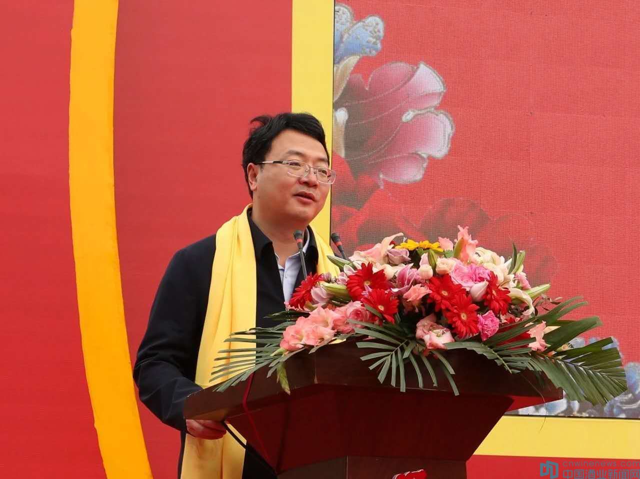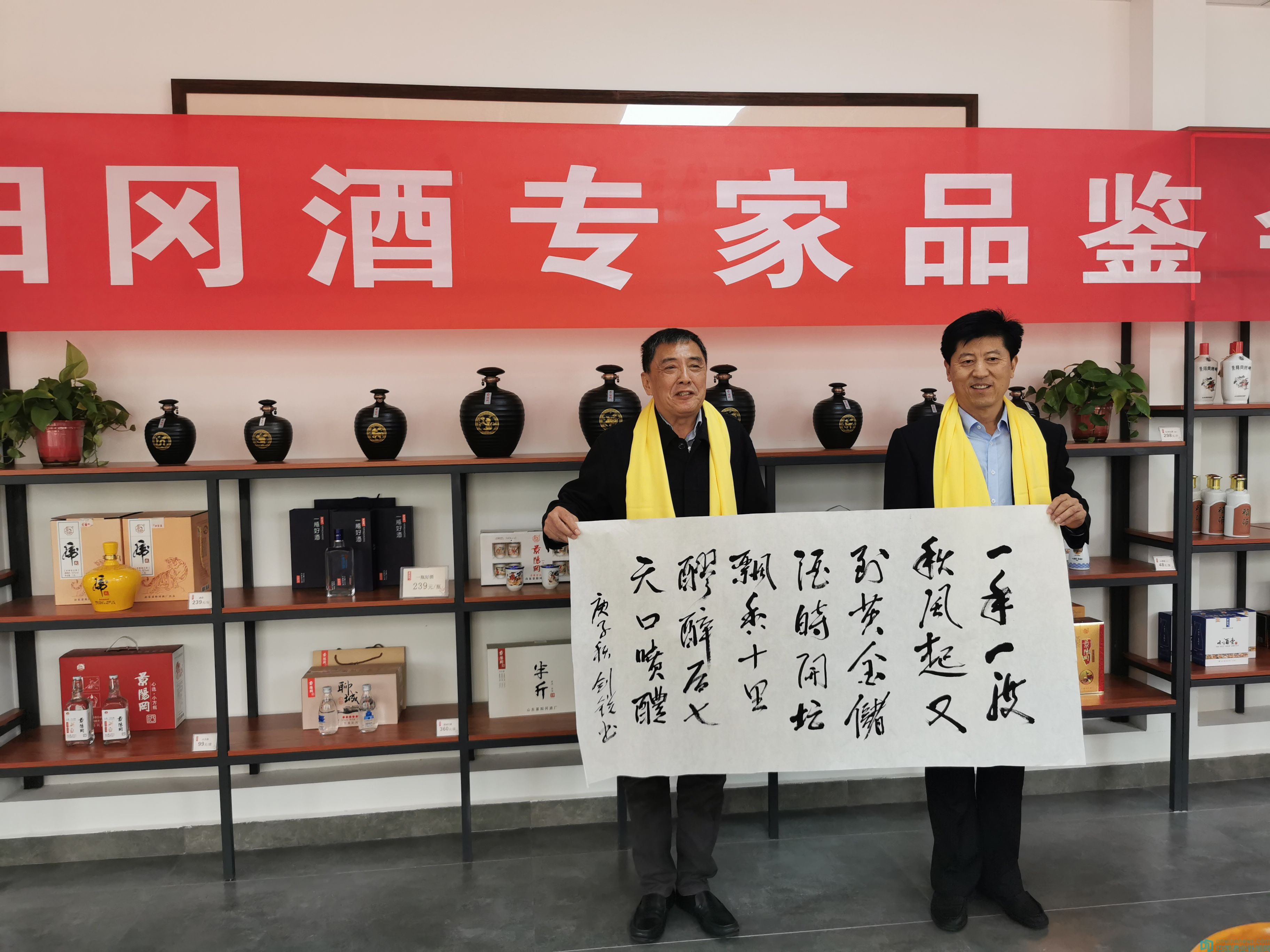 山東省糖酒副食品商業(yè)協(xié)會(huì)會(huì)長(zhǎng)薛劍銳揮毫潑墨,題寫“一年一度秋風(fēng)起,又到黃金儲(chǔ)酒時(shí),開(kāi)壇飄香十里醪,醉后七天口噴醴”,盛贊封藏酒、封藏大典。