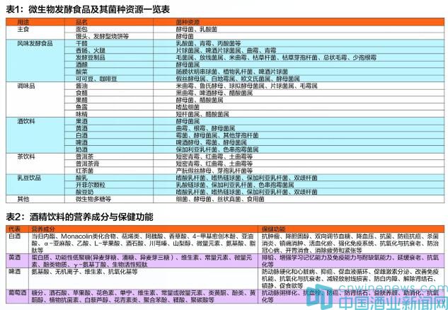 表2為酒精飲料的營養成分與保健功能