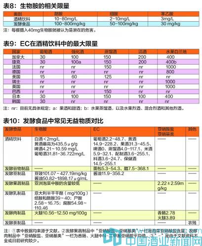 我國食品中EC的限量標準正在制定中。表9是部分國家酒精飲料中EC的限量,是EC在酒精飲料中的最大限量