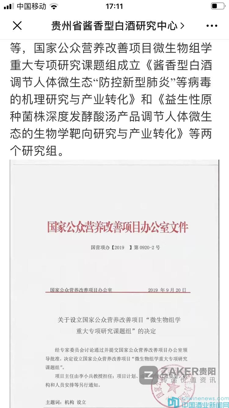 (轉載自ZAKER貴陽,文章原標題為《貴州一機構以醬香白酒做“防控新型肺炎”研究 自稱是國家立項的合法課題》)