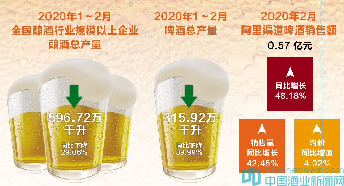 盡管來自國家統(tǒng)計局?jǐn)?shù)據(jù)顯示,2020年1~2月,全國釀酒行業(yè)規(guī)模以上企業(yè)釀酒總產(chǎn)量596.72萬千升,同比下降29.06%。其中1~2月啤酒總產(chǎn)量315.92萬千升,同比下降39.99%。但是,有關(guān)專家提出,隨著3月份復(fù)工復(fù)產(chǎn)的有序推進(jìn),以及消費(fèi)升級的加持,依然看好擁有高品質(zhì)的品牌啤酒。