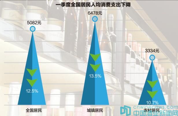 國家統計局調查顯示:一季度,全國居民人均消費支出5082元,比上年同期名義下降8.2%,扣除價格因素,實際下降12.5%。其中,城鎮居民人均消費支出6478元,下降9.5%,扣除價格因素,實際下降13.5%;農村居民人均消費支出3334元,下降5.4%,扣除價格因素,實際下降10.7%。這些反映到消費市場同樣是大幅下降。湖北省酒類流通行業協會常務副會長兼秘書長顧虎表示,針對武漢市大型商業體的相關調查顯示,1-3月銷售下滑70%,包括酒類在內,消費市場面臨的形勢相當嚴峻。