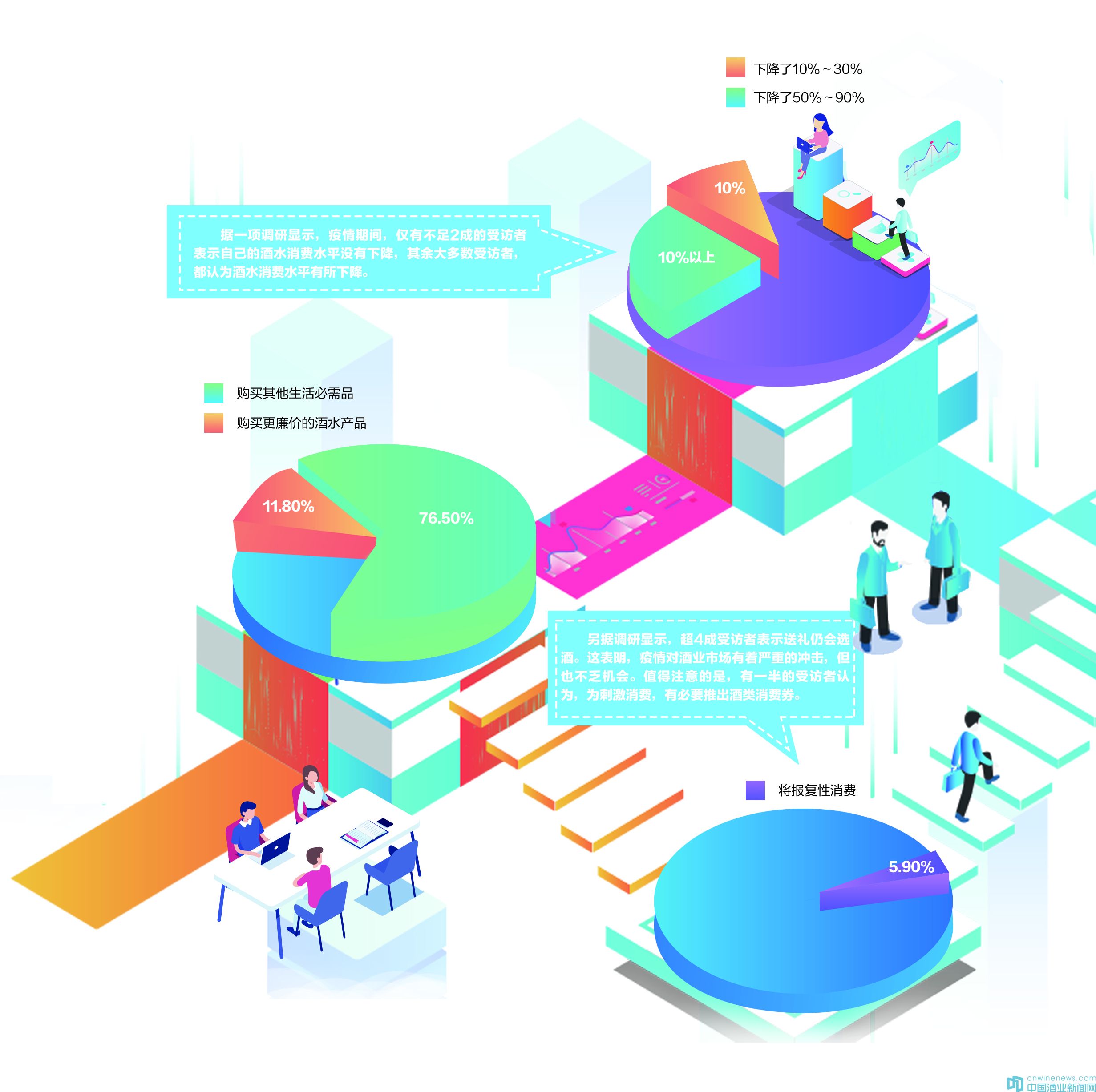 其中僅有5.9%的受訪者表示將報復(fù)性消費,超4成受訪者表示送禮仍會選酒。這表明,疫情對酒業(yè)市場有著嚴(yán)重的沖擊,但也不乏機會。值得注意的是,有一半的受訪者認(rèn)為,為刺激消費,有必要推出酒類消費券。