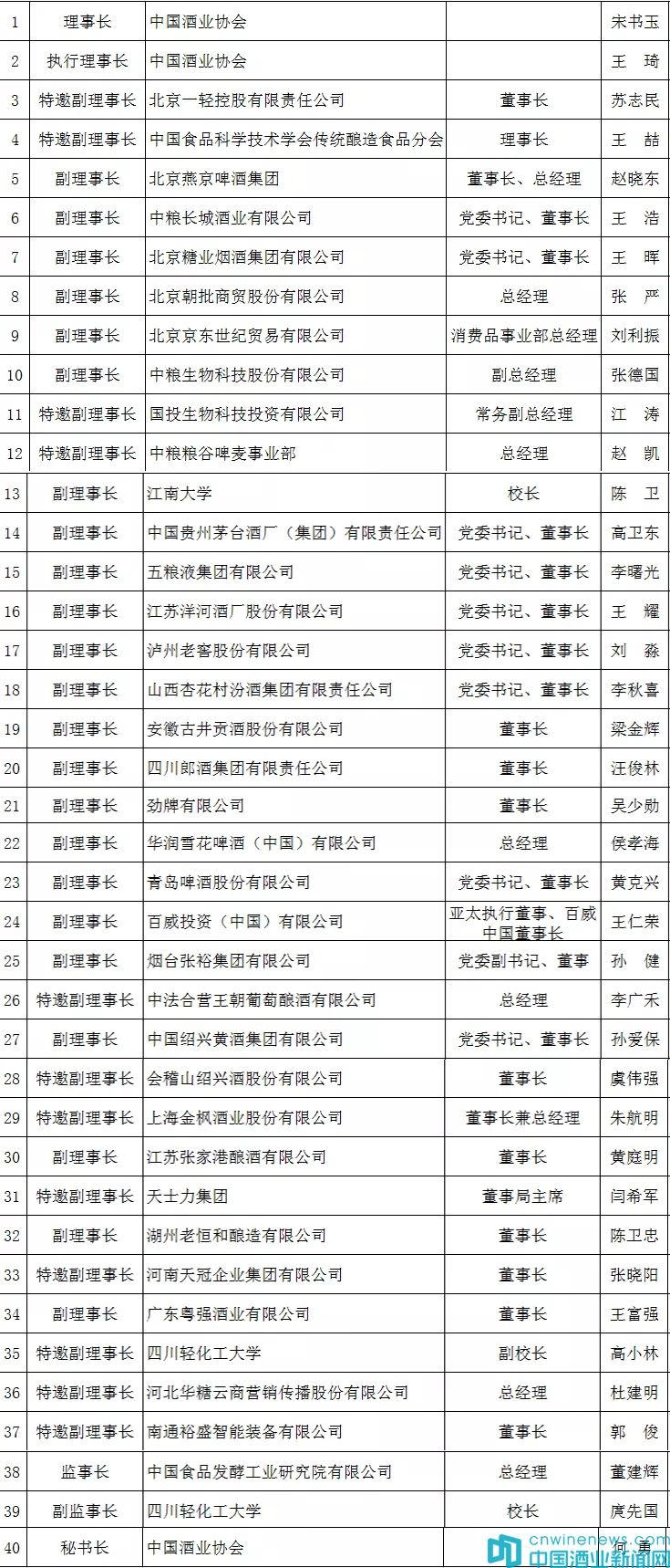 附:中國酒業協會第六屆理事會名單: