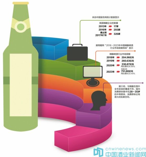 正是由于精釀啤酒具有市場空間大、利潤率高等特征,契合了消費者追求個性化、健康化、多樣化的品質(zhì)消費要求,精釀啤酒的市場規(guī)模與企業(yè)數(shù)量均成穩(wěn)步增長的態(tài)勢。