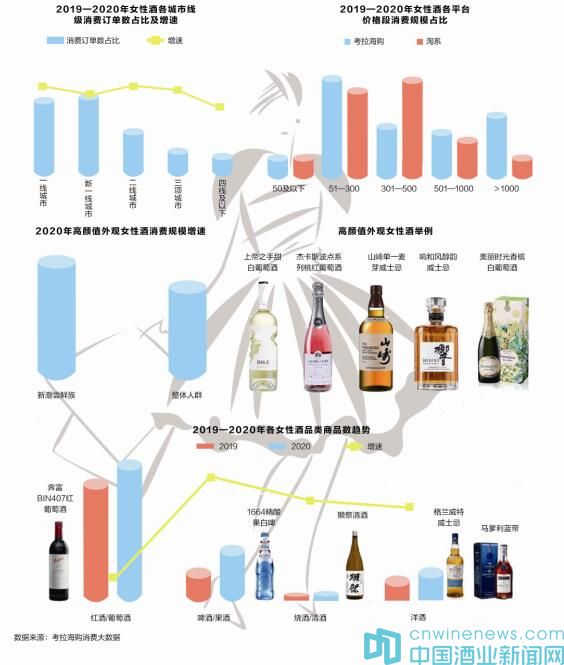 近日,《2020考拉海購(gòu)女性酒消費(fèi)洞察報(bào)告》(以下簡(jiǎn)稱報(bào)告)發(fā)布。數(shù)據(jù)顯示,90后年輕一代女性消費(fèi)者對(duì)酒展現(xiàn)出極大的熱情,尤其是高線級(jí)城市成為女性酒消費(fèi)的主力軍。在價(jià)位方面,考拉海購(gòu)整體女性酒高價(jià)位段商品占比明顯高于淘系。