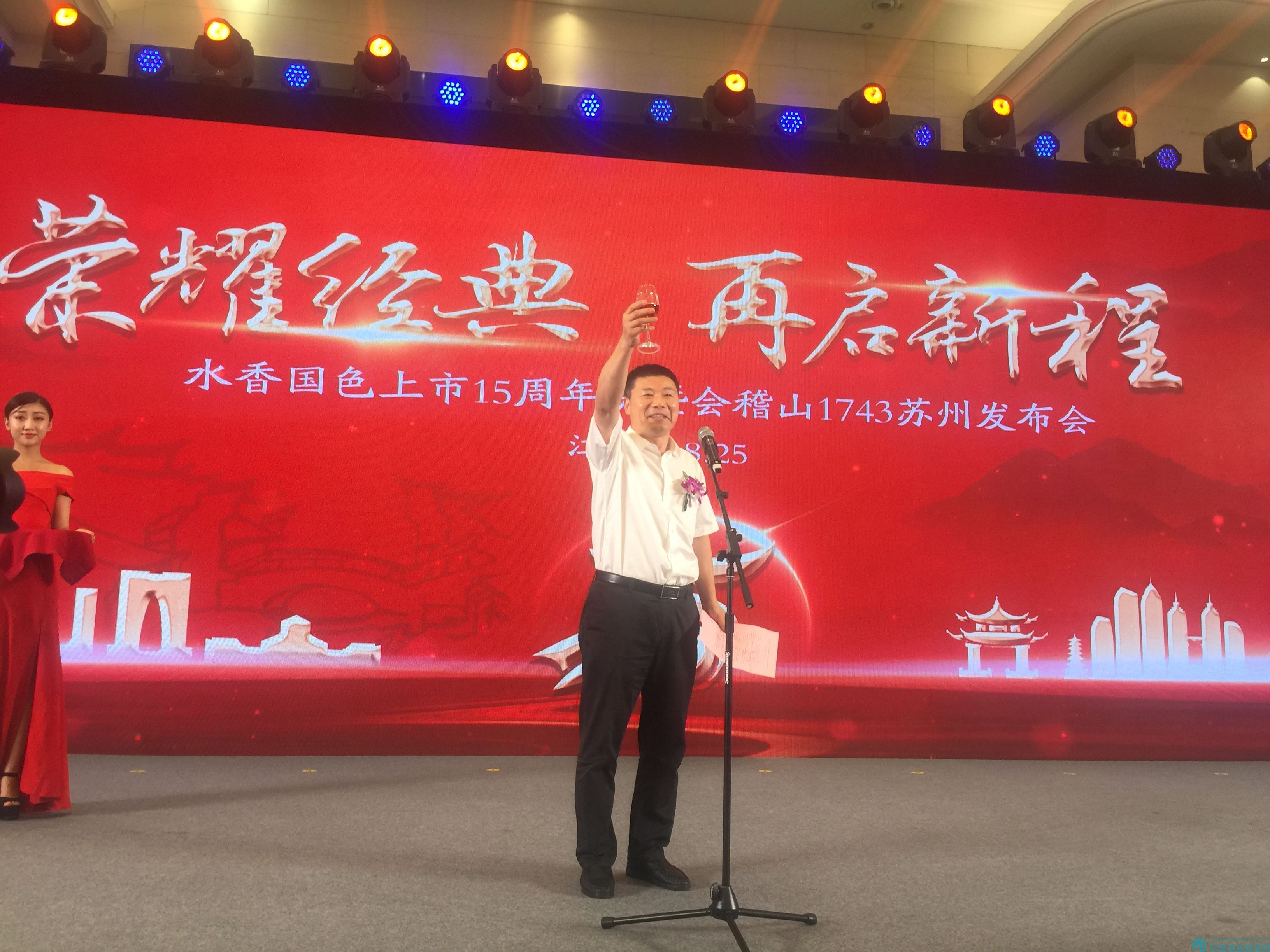會(huì)稽山紹興酒股份有限公司董事長(zhǎng)虞偉強(qiáng)、總經(jīng)理傅祖康帶領(lǐng)公司營(yíng)銷(xiāo)團(tuán)隊(duì),與江蘇省工商聯(lián)常委、江蘇省餐飲商會(huì)會(huì)長(zhǎng)陳素興先生等嘉賓,以及來(lái)自江蘇市場(chǎng)各大經(jīng)銷(xiāo)商、終端客戶(hù)代表和媒體朋友們等400余人齊聚一堂,共同舉杯慶祝水香國(guó)色上市十五年取得的成績(jī),見(jiàn)證會(huì)稽山1743在蘇州發(fā)布的歷史時(shí)刻。