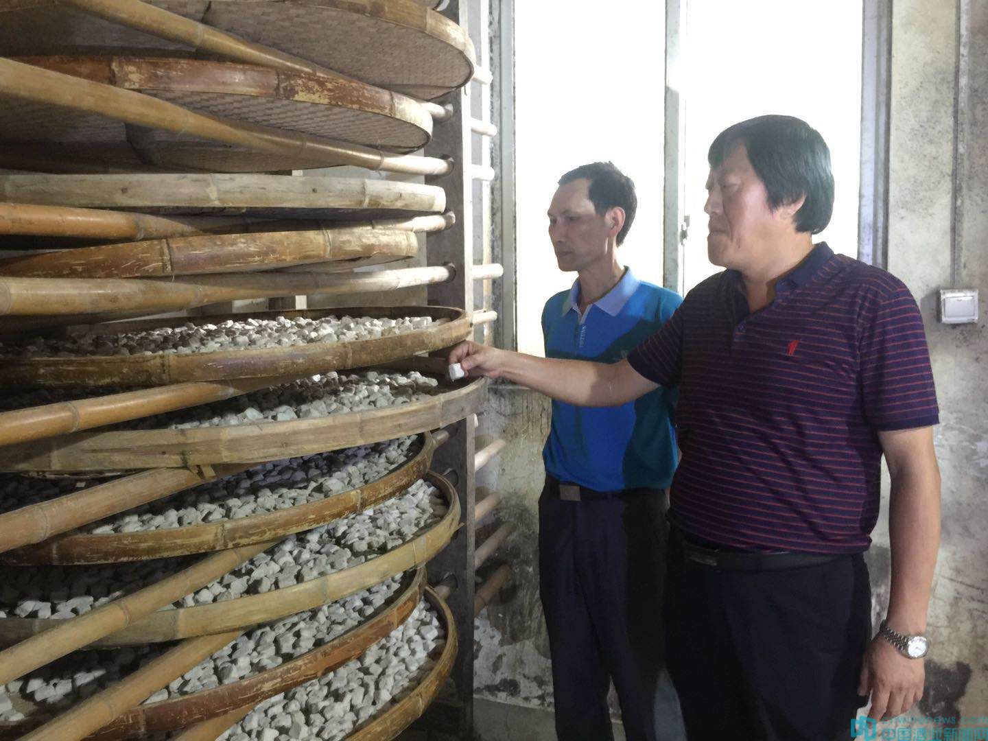 8月正是酷暑難熬時節,福老酒業的藥白曲生產正熱火朝天的進行著。在悶熱的制曲車間,總經理江信基拿著曲塊給華夏酒報記者介紹說,紅曲為福建地方特產,含有特種成份紅色素并有紅曲特殊的芳香氣味;藥白曲系由六十多味名貴中藥材如當歸、杜仲、川芎、公丁補益芬香中藥材調制成的;應用紅曲、藥白曲釀造黃酒能賦予老酒特有的健康養生功效,鮮艷美麗的紅褐色澤和獨特的風味。