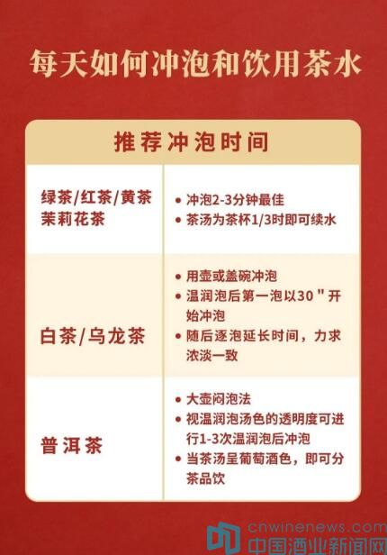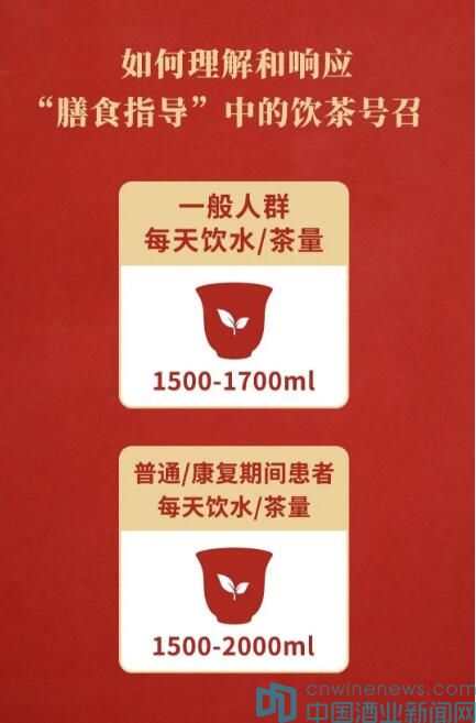 答:(1)一般人群應“足量飲水,成年人每天7-8杯(1500-1700毫升),提倡飲用白開水和茶水;不喝或少喝含糖飲料”。家中常用普通茶杯或茶壺的容量一般為150-300mL左右,上午3-4杯、下午3-4杯、晚上1-2杯,便能滿足每天7-8杯(1500-1700毫升)茶水的建議量;對于茶葉用量,提倡每日飲茶10-15克,分3次飲用,每次沖飲3-4泡左右。平時有飲茶習慣的人,一般正常飲用就可以達標。我們鼓勵普通人養成每天喝茶的習慣。