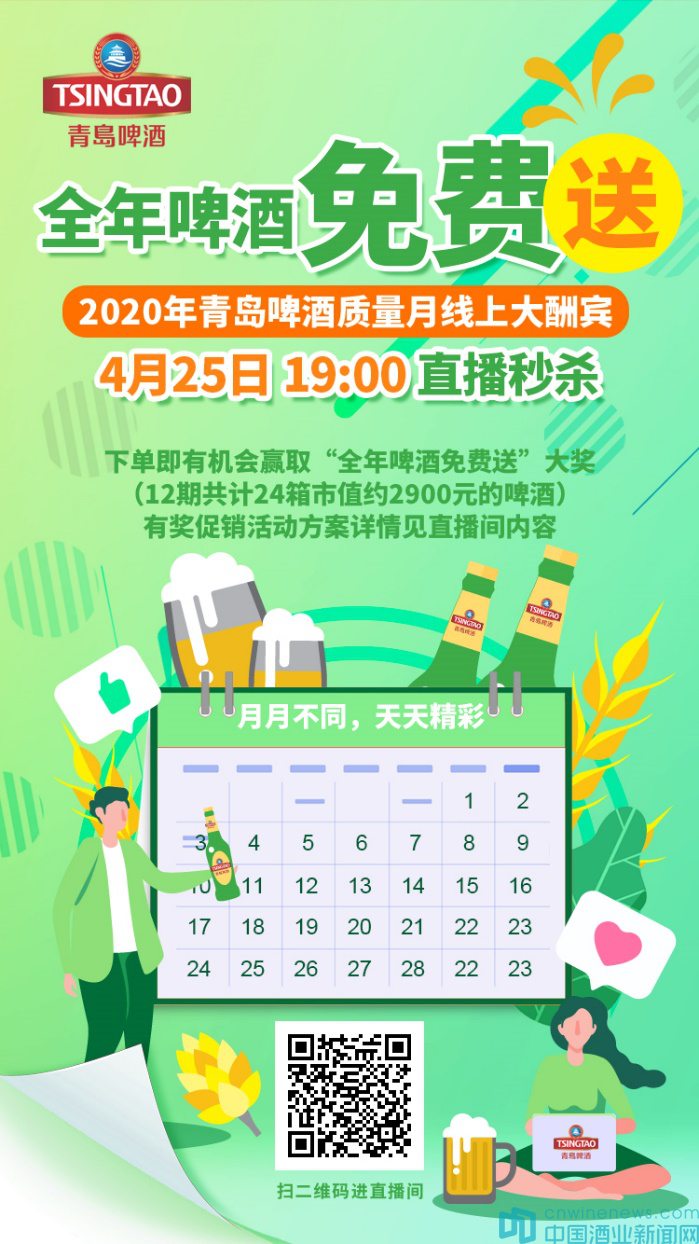 青啤直播夜,花式好禮送不停。立刻拿起手機,掃描海報中二維碼進入直播間并收藏,鎖定4月25日晚7點青啤直播夜,屆時青島啤酒將帶給你更多驚喜。