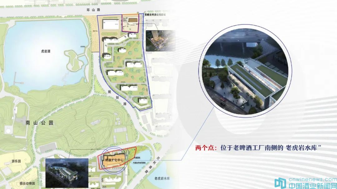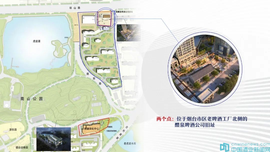 “兩個點”一是位于啤酒工廠北側(cè)的“醴泉啤酒工廠舊址”,已有百年歷史,于2011年被認定為煙臺市級保護文物。二是位于啤酒工廠南側(cè)的“老虎巖水庫”西岸,這里因水質(zhì)優(yōu)良,而成為煙臺啤酒的開源地,是煙臺啤酒的根脈所在。