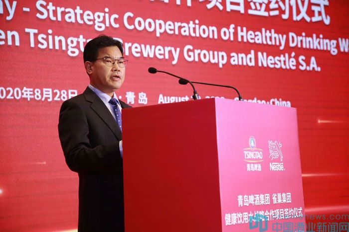 青島市副市長(zhǎng)耿濤,青島市國(guó)資委總會(huì)計(jì)師劉萍女士,青島啤酒公司黨委書記、董事長(zhǎng)黃克興,雀巢大中華區(qū)董事長(zhǎng)兼首席執(zhí)行官羅士德(Rashid Qureshi)出席簽約儀式;雀巢瑞士總部董事會(huì)執(zhí)行副總裁Sanjay Bahadur通過視頻方式參加了簽約儀式。活動(dòng)由全國(guó)政協(xié)委員、普華永道山東主管合伙人張國(guó)俊主持。