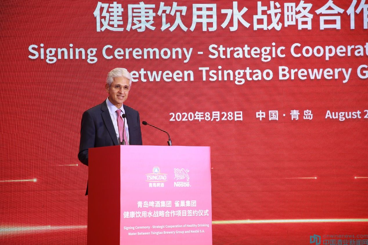 青島市副市長耿濤,青島市國資委總會計師劉萍女士,青島啤酒公司黨委書記、董事長黃克興,雀巢大中華區(qū)董事長兼首席執(zhí)行官羅士德(Rashid Qureshi)出席簽約儀式;雀巢瑞士總部董事會執(zhí)行副總裁Sanjay Bahadur通過視頻方式參加了簽約儀式。活動由全國政協(xié)委員、普華永道山東主管合伙人張國俊主持。