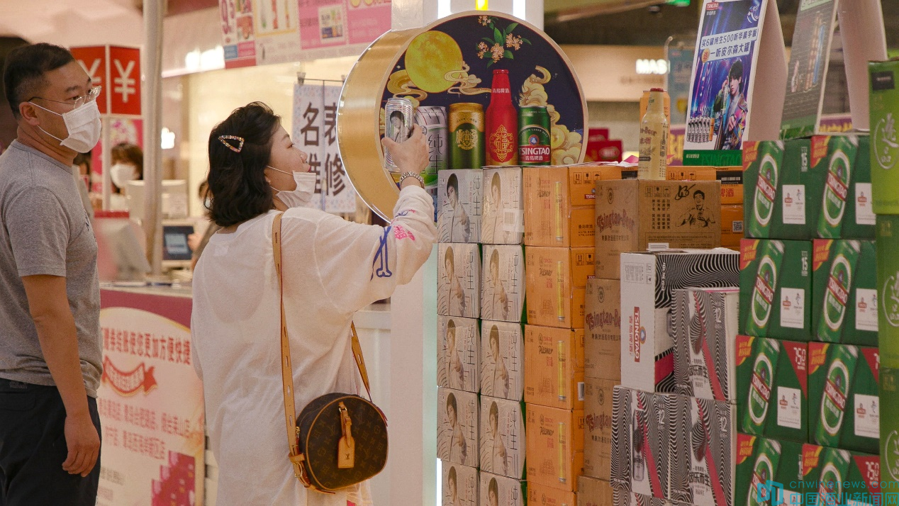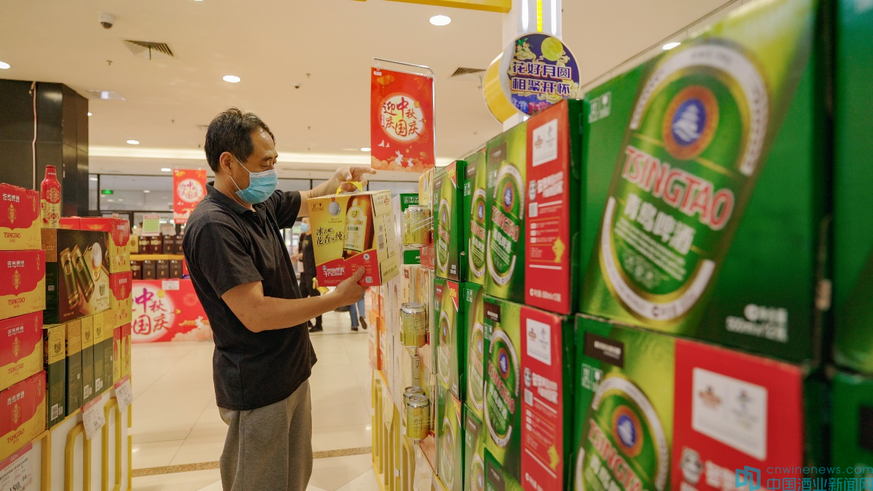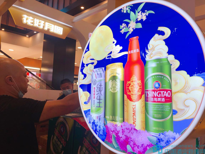青島啤酒工作人員告訴記者,除了線下商超,在天貓、京東等各大電商渠道,青島啤酒中秋促銷也在進行中,方便大家“手指一點 啤酒到家”。