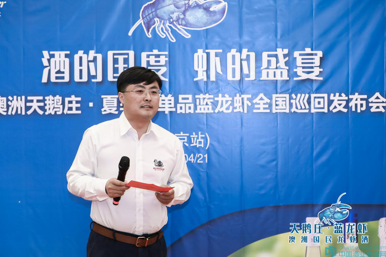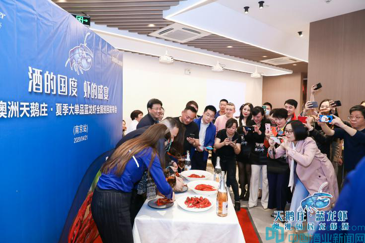 2020年4月21日,以“酒的國度 蝦的盛宴”為主題的澳洲天鵝莊·夏季大單品藍(lán)龍蝦全國巡回發(fā)布會(huì),首站南京站圓滿舉辦。澳大利亞天鵝釀酒集團(tuán)中國運(yùn)營中心營銷總裁張登堯、南京龍千禧商貿(mào)有限公司董事長慕戰(zhàn)江、江蘇蘇糖糖酒食品有限公司常務(wù)副總經(jīng)理王建政、澳大利亞天鵝釀酒集團(tuán)江蘇蘇北省區(qū)總經(jīng)理李平、澳大利亞天鵝釀酒集團(tuán)江蘇蘇南省區(qū)總經(jīng)理張明星等嘉賓,以及來自南京的經(jīng)銷商、意見領(lǐng)袖和消費(fèi)者,還有《華夏酒報(bào)》等媒體,共同出席了本次活動(dòng)。