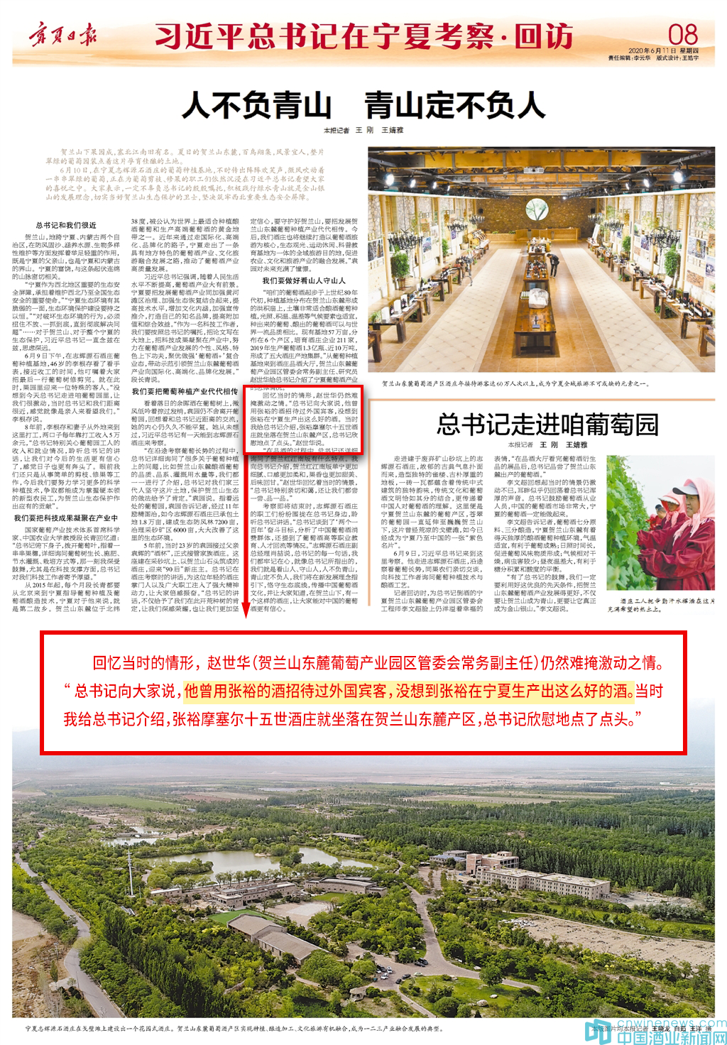 “在品酒的過程中,總書記還詳細詢問了賀蘭紅江南版有什么特點。我向總書記介紹,賀蘭紅江南版單寧更加細膩、口感更加柔和,果香也更加甜美、后味回甘。”趙世華回憶著當時的情景,“總書記特別親切和藹,還讓我們都嘗一嘗、品一品。”