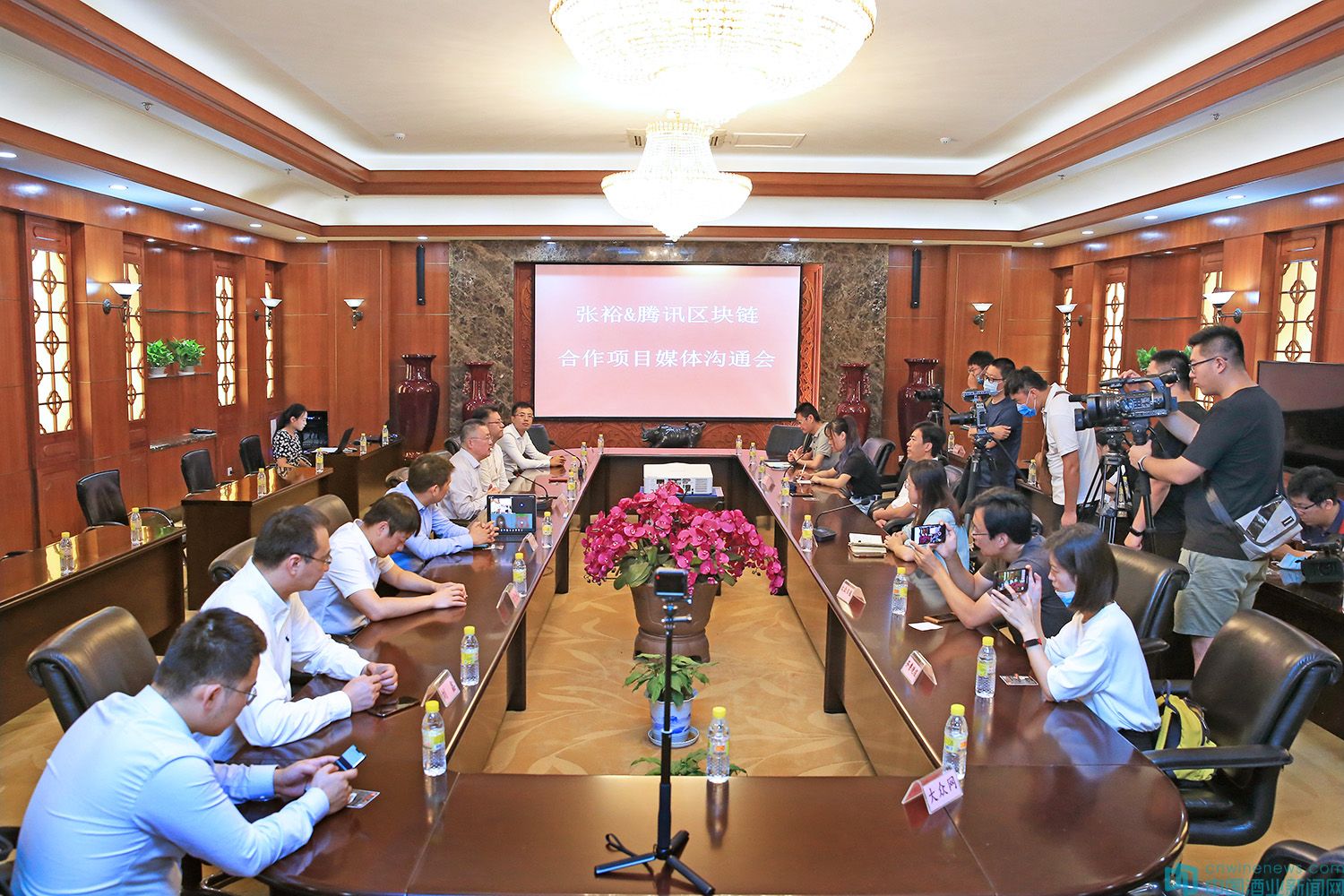 2020年7月30日早上8點,隨著煙臺張裕公司董事長周洪江和騰訊副總裁馬斌一起將手中的紅綢拉下,張裕&騰訊區塊鏈合作項目正式啟動。