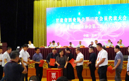 大會聽取并審議通過了由甘肅省酒類商品管理局局長、甘肅省酒業(yè)協(xié)會第二屆理事會代理會長、甘肅省葡萄酒產(chǎn)業(yè)協(xié)會會長陳浦代表上屆兩個協(xié)會理事會所作的工作報告,審議并投票表決通過兩個協(xié)會《財務(wù)收支情況報告》《章程》和《財務(wù)管理辦法》及《會費管理辦法》《選舉辦法》。選舉產(chǎn)生了甘肅省酒業(yè)協(xié)會第三屆理事會、監(jiān)事會成員,甘肅省葡萄酒產(chǎn)業(yè)協(xié)會第二屆理事會、監(jiān)事會成員;選舉產(chǎn)生了兩個協(xié)會的會長、副會長、秘書長和常務(wù)理事。張秉慶當(dāng)選第三屆甘肅省酒業(yè)協(xié)會會長,韓舜愈當(dāng)選第二屆甘肅省葡萄酒產(chǎn)業(yè)協(xié)會會長,同時進(jìn)行了授牌儀式。